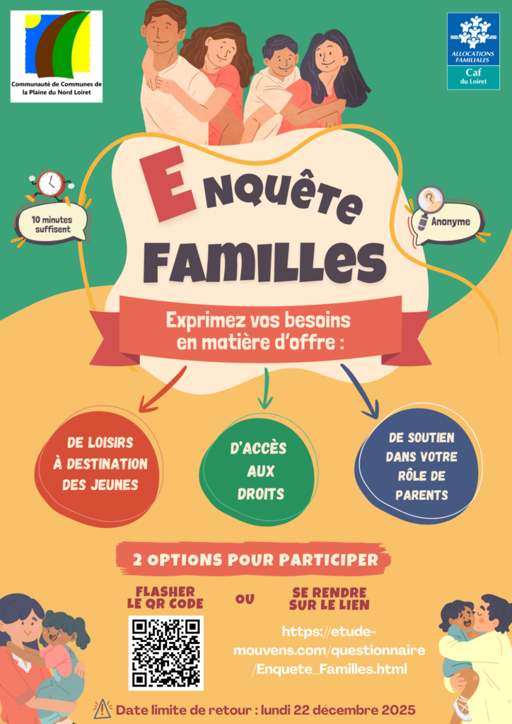 La Communauté de Communes de la Plaine du Nord Loiret réalise un diagnostic 🕵️♀️ de territoire pour mieux connaître et répondre aux besoins des familles 🤱 et des jeunes 🧑🦱 qui y vivent.