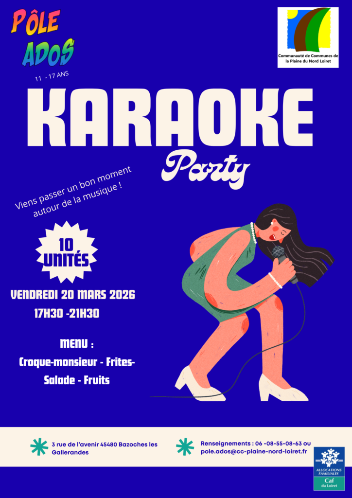 Avis à tous les talents 🏆 (et aux casseroles 😂) du Pôle Ados ! Le vendredi 20 mars, on prend le micro 🎤 pour une KARAOKE PARTY 🌟 de folie ! Que tu sois plutôt Beyoncé 💃 , Soprano ou classique des années 80 🪩, viens passer un moment inoubliable 🤩 avec nous !