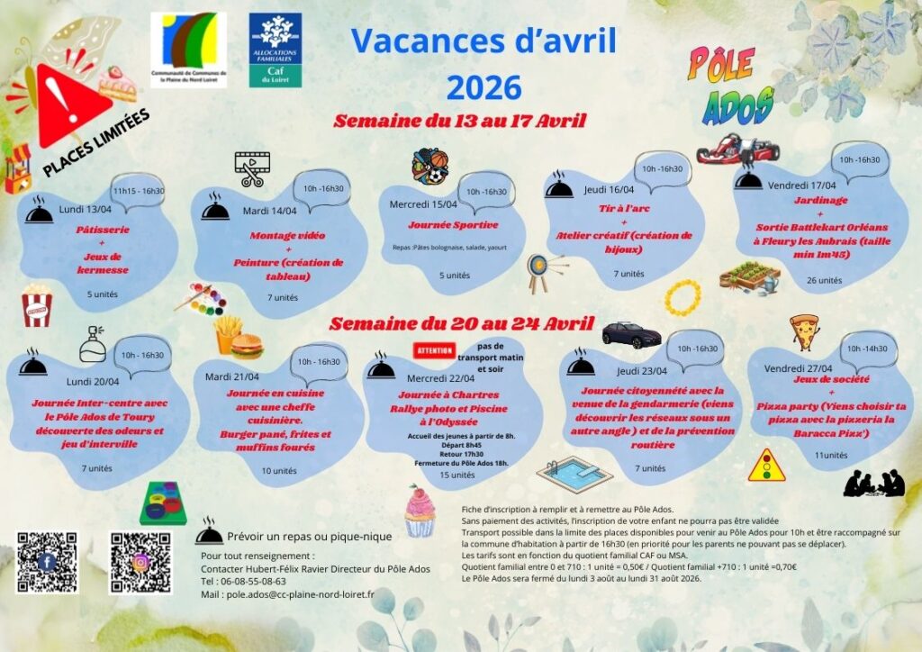 PROGRAMME DES VACANCES D’AVRIL 2026